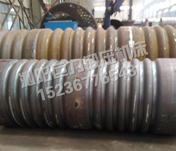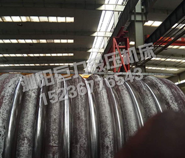 W12NC-系列微控波紋四輥卷板機(jī),既可作為普通四輥卷板機(jī)使用,能將金屬板料一次上料,不需調(diào)頭即可完成板料端部預(yù)彎和卷制成形,剩余直邊小,是卷制圓形、弧形工件的理想設(shè)備。該機(jī)上下工作輥均為主驅(qū)動(dòng)輥,由液壓馬達(dá)、行星減速機(jī)驅(qū)動(dòng),側(cè)輥為被動(dòng)輥,下輥、側(cè)輥升降為液壓傳動(dòng),升降位移均由計(jì)算機(jī)控制,自動(dòng)調(diào)平,屏幕數(shù)字顯示,同步精度±0.15mm。翻轉(zhuǎn)軸承體的翻轉(zhuǎn)和復(fù)位,由液壓驅(qū)動(dòng),上輥尾部裝有平衡機(jī)構(gòu),可以方便卸出卷制后的工件及筒體。設(shè)有移動(dòng)式獨(dú)立操作臺(tái),方便工人使用,設(shè)有安全聯(lián)鎖裝置,該機(jī)功能全,精度高,操作方便,是石油、化工、鍋爐、造船、水電、金屬結(jié)構(gòu)等行業(yè)卷制圓形、弧形和錐形工件為理想的機(jī)型。該機(jī)除了作為普通四輥卷板機(jī)使用外,在上下工作輥上加裝模具,還能壓制波紋筒形工件,每組模具采用上下兩片模具組合而成,方便拆裝,而且,各組模具可以自由組合成不同長(zhǎng)度,以適應(yīng)不同寬度的波紋筒壓制。為了在一臺(tái)機(jī)器上同時(shí)滿足內(nèi)波紋筒和外波紋筒的壓制,上下工作輥設(shè)計(jì)為同一直徑,針對(duì)不同的波形,上下輥上的凸模和凹模可以互換,地降低了產(chǎn)品成本,方便用戶使用。在機(jī)器一側(cè)的聯(lián)接梁上布置有二個(gè)擋料裝置,以確保壓制波紋筒時(shí),工件不會(huì)跑偏,保證波紋筒的精度符合要求。擋料裝置左右各一個(gè),沿軸向可以通過(guò)油缸作用移動(dòng)一定的距離,以適應(yīng)不同寬度的波紋筒都能準(zhǔn)確定位。